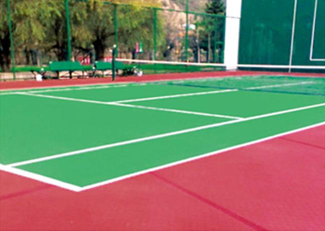 1、粘接層:在混凝土基底之上鋪涂一層丙烯酸球場專用專用粘合劑。該粘合劑為水基性環氧樹脂,耐堿性,能緊密地粘接在水泥地表面之上,并與中涂涂料緊密結合防止出現脫膠起皺等問題。