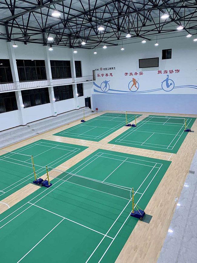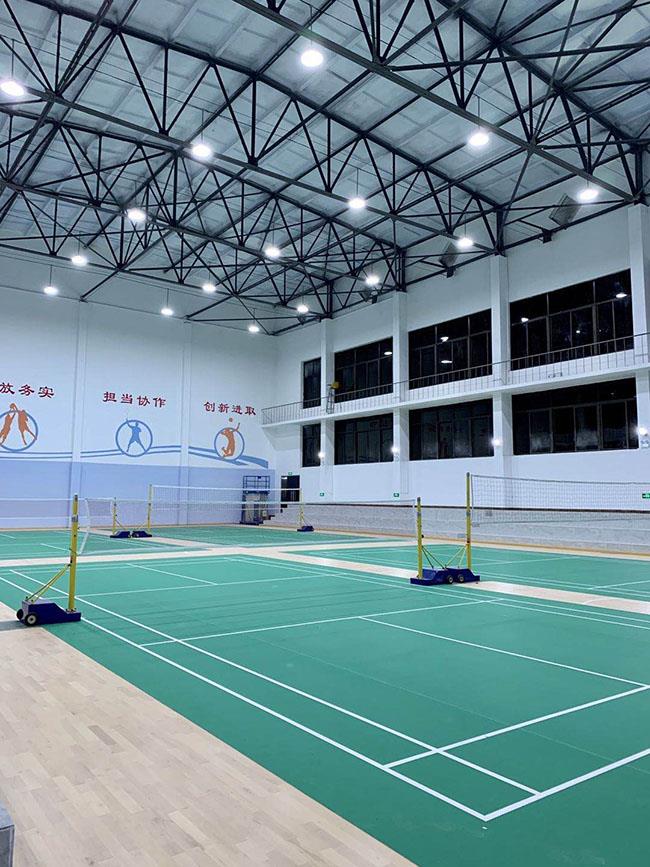 飛喬體育承建木地板籃球場、PVC羽毛球場、羽毛球柱、整體燈光及室內裝飾等