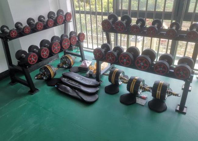 乒乓球桌、啞鈴架、PVC地板等