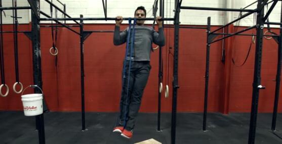 2.環(huán)狀彈力帶:彈力帶能幫助你減輕重量,更正確地感覺背部肌群在引體向上過程中如何活動。建議先從雙腳放在彈力帶試起,再到單腳放在彈力帶上。循序漸進地擺脫彈力帶的協(xié)助。
