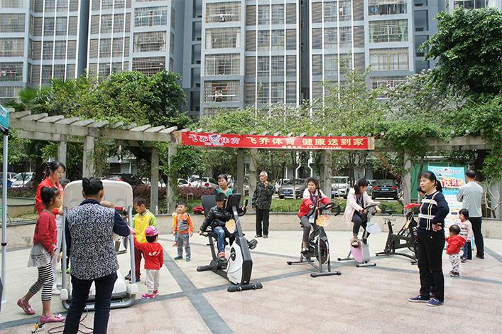 2017年4月22日,飛喬體育器材有限公司“飛喬體育 健康送到家”金碧苑小區行體驗活動正式啟動。當天,飛喬向金碧苑體驗用戶提供了一臺跑步機、一輛動感單車、一臺甩脂機,兩輛立式單車、兩輛自行車,多臺按摩器等運動器材供居民體驗使用。