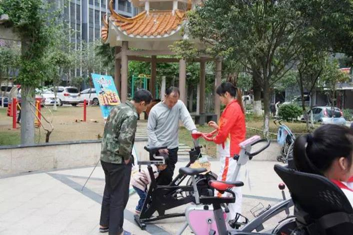 活動現場,居民們熱情參與到此次活動中來,孩子們看到這樣既能鍛煉身體又有趣的“大型玩具”都顯得異常興奮。對健身器材愛不釋手,場面一時活躍爆棚,局面一度差點控制不住。飛喬人認真向居民們指導講解健身器材的使用方式,居民們仔細聆聽并積極體驗,現場分外愉悅和諧。
