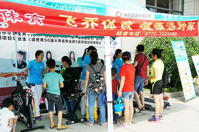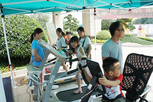活動當(dāng)天,飛喬體育提供跑步機(jī)、動感單車、腹肌板等10余款健身器材供碧桂園的游園客戶體驗使用。體驗活動具有互動性、娛樂性等特點,游戲一開始,就吸引了大批大、小朋友的熱烈關(guān)注。