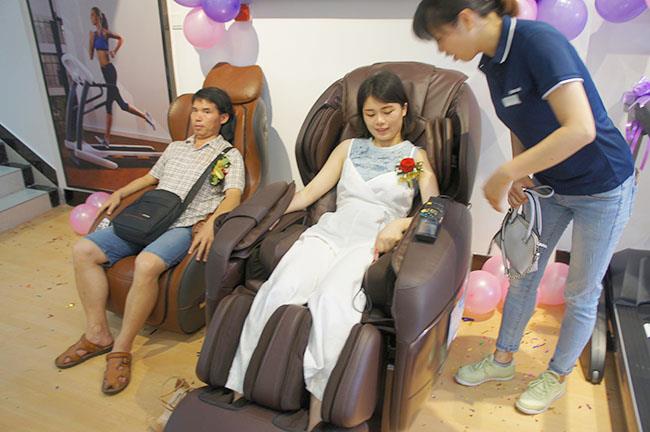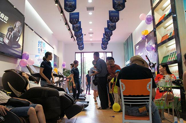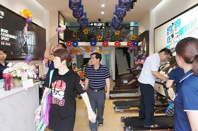 開業儀式結束后,店內擠滿了前來咨詢和購買的客戶,有的在跑步機上體驗運動的暢快;有的坐在按摩椅上享受按摩的舒適;有的在健身車上舒展全身的筋骨。