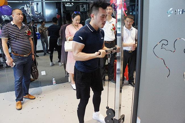 健身教練在店內向來賓們展示使用各種健身器材,健身教練們俊美帥氣的身姿吸引了大批嘉賓的眼球,使得嘉賓們紛紛駐足圍觀。