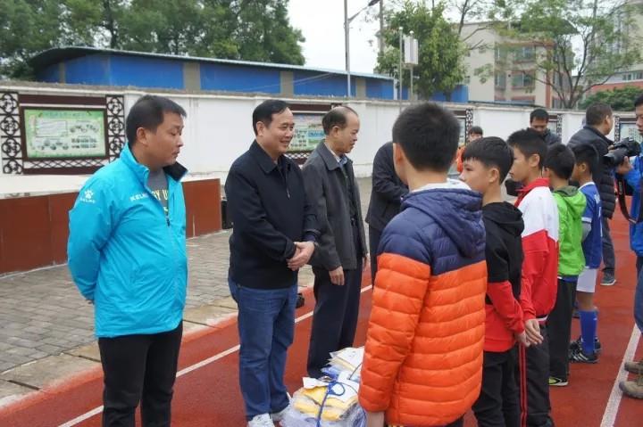 當天,柳江區(qū)足球協(xié)會主席韋傳志先生、柳江區(qū)教育局副局長韋莉女士、飛喬體育器材有限公司李崇山先生等一同出席了此次捐贈服裝儀式。