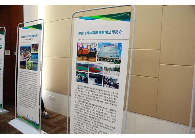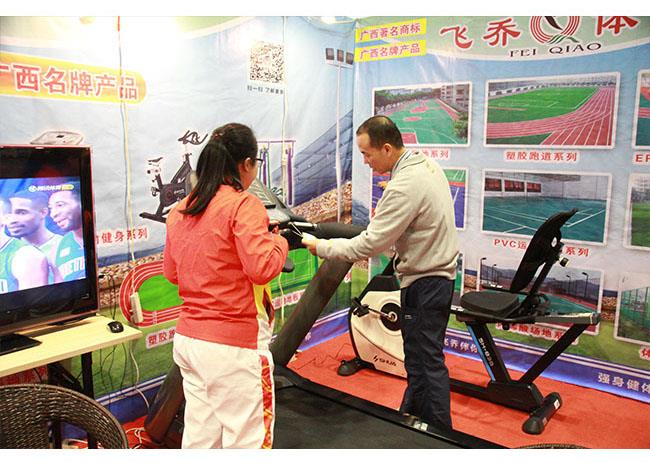 飛喬體育器材有限公司做為廣西知名體育用品器材生產企業隆重參展,其中籃球架系列、路徑健身系列、運動場地系列等產品得到廣泛關注。
