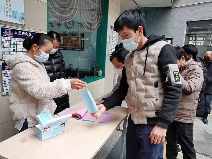 全體工作人員開工第一天檢測體溫,發放口罩,減少人員集聚,